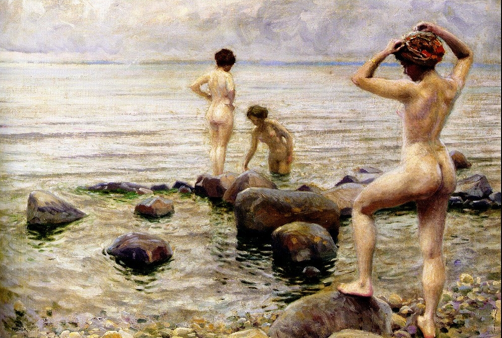 Paul Gustav Fischer [1860-1934] fue un pintor danés . Su educación artística formal duró muy poco tiempo en su adolescencia, cuando pasó dos años en la Real Academia Danesa de Arte de Copenhague. Fischer comenzó a pintar cuando todavía era joven, guiado por su padre. Fue gracias a una pintura que había publicado en Ude og Hjemme que su reputación comenzó a evolucionar a medida que se puso en contacto con los jóvenes naturalistas daneses.